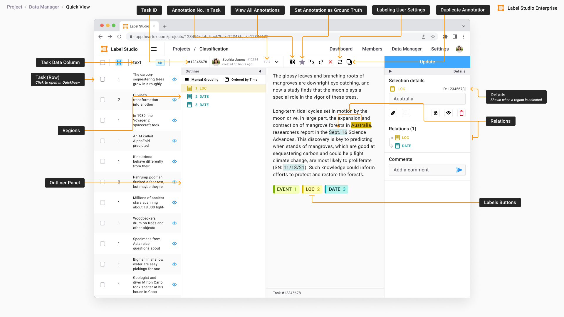 - Review the annotated tasks. Only available in Label Studio Enterprise Edition.
