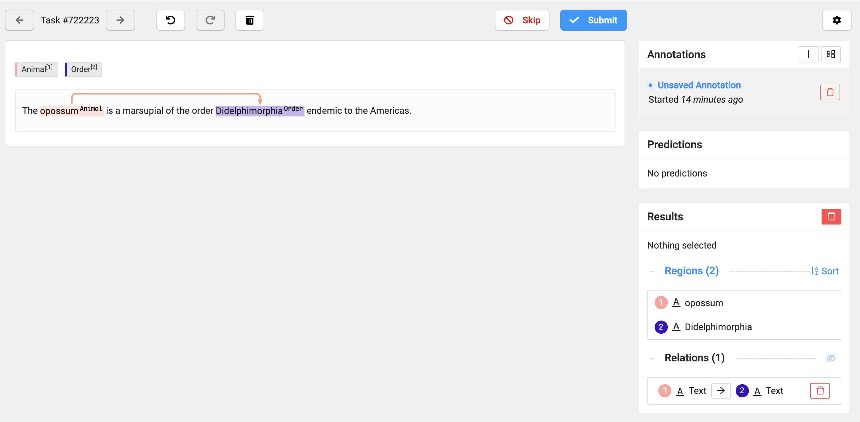 icon next to the task annotation ID to open an annotation tab. - Label the task.